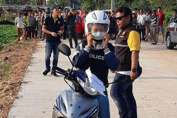 The victim’s decomposing body, with tattoos on both arms, was found in the Huai Phra stream in Muang district of Khon Kaen on the evening of April 24. There was a gunshot wound to the forehead and the skull was dented. There were also many bruises on the body. She had been a resident of Ban Kud Kwang village in Nam Phong district of Khon Kaen.