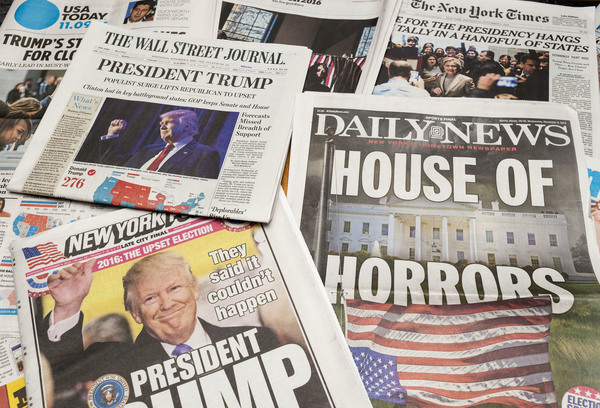 The left-leaning French daily Liberation greeted the news with a one-word coinage often echoed elsewhere: "Trumpocalypse." The Times of India, that country's largest newspaper, offered congratulations to the president-elect, paired with a sly use of ellipses to refer to one of Trump's best-known vulgarities. "Donald Trump grabs America by the ..." it tweeted.