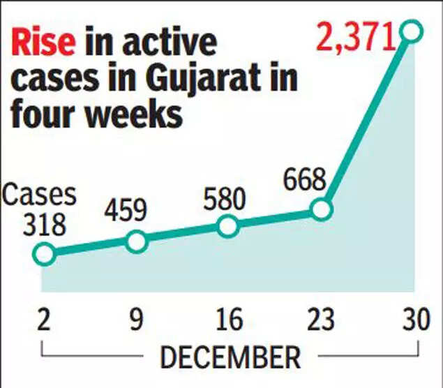 AHMEDABAD: Gujarat in 24 hours ending 5 pm on Thursday added 573 new Covid-19 cases. With the discharge of 102 patients, the state added 471 active cases in a day, taking the tally to 2,371.