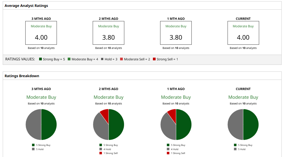 Overall, among 10 analysts, Fluor carries a “Moderate Buy” consensus rating, split evenly between five “Strong Buy” and five “Hold” recommendations. The mean price target of $49 implies an expected 2.5% upside from current levels.