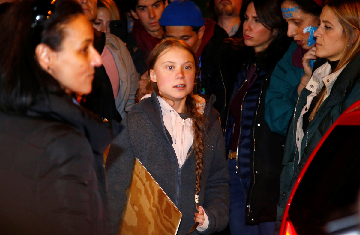 Climate change activist Greta Thunberg arrives at a climate change protest march, as COP25 climate summit is held in Madrid, Spain, December 6, 2019. REUTERS/Javier BarbanchoClimate change activist Greta Thunberg is seen before departing a climate change protest march due to security concerns, as COP25 climate summit is held in Madrid, Spain, December 6, 2019. REUTERS/Sergio PerezClimate change activist Greta Thunberg is seen before departing a climate change protest march due to security concerns, as COP25 climate summit is held in Madrid, Spain, December 6, 2019. REUTERS/Javier BarbanchoPeople carry a banner as they attend a climate change protest march, as COP25 climate summit is held in Madrid, Spain, December 6, 2019. REUTERS/Rafael MarchantePeople attend a climate change protest march, as COP25 climate summit is held in Madrid, Spain, December 6, 2019. REUTERS/Rafael MarchantePeople attend a climate change protest march, as COP25 climate summit is held in Madrid, Spain, December 6, 2019. REUTERS/Rafael MarchanteClimate change activist Greta Thunberg talks with participants at the COP25 in Madrid, Spain, December 6, 2019. REUTERS/Juan MedinaClimate change activist Greta Thunberg is seen in Madrid, Spain, December 6, 2019. REUTERS/Juan MedinaClimate change activist Greta Thunberg is seen in Madrid, Spain, December 6, 2019. REUTERS/Juan MedinaClimate change activist Greta Thunberg is pictured as she arrives in Madrid, Spain, December 6, 2019. REUTERS/Rafael MarchanteClimate change activist Greta Thunberg arrives in Madrid, Spain, December 6, 2019. REUTERS/Juan MedinaClimate change activist Greta Thunberg is pictured as she arrives in Madrid, Spain, December 6, 2019. REUTERS/Rafael MarchanteClimate change activist Greta Thunberg arrives in Madrid, Spain, December 6, 2019. REUTERS/Juan MedinaClimate change activist Greta Thunberg arrives in Madrid, Spain, December 6, 2019. REUTERS/Juan MedinaClimate change activist Greta Thunberg arrives in Madrid, Spain, December 6, 2019. REUTERS/Juan Medina