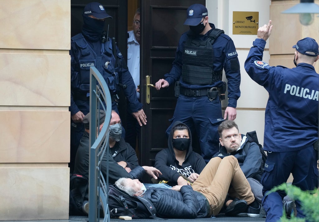 A group of pro-democracy activists in Poland entered the grounds of the country's constitutional court in an act of civil disobedience Monday, on the eve of an expected court ruling critical to the country's future relationship with the rest of the European Union