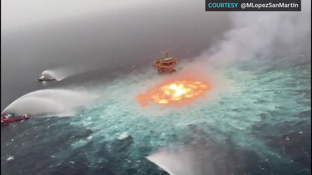Mexico's state-owned oil company, Petroleos Mexicanos, said on Monday a bizarre chain of events, including a lightning storm and a simultaneous gas pipeline leak, set off the strange subaquatic fire.