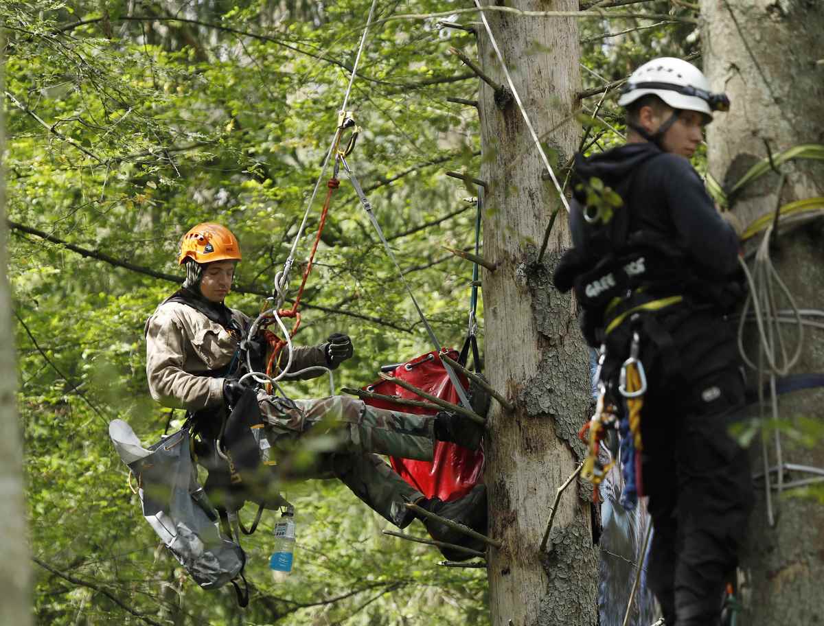 Forest guards remove environmental activists from several countries during their action in the defence of one of the last primeval forests in Europe, Bialowieza forest, Poland August 29, 2017. REUTERS/Kacper Pempel