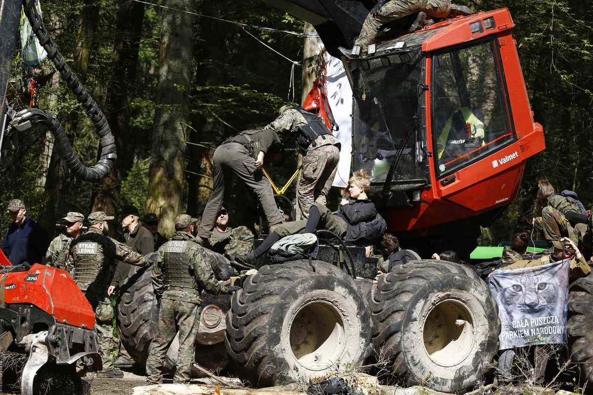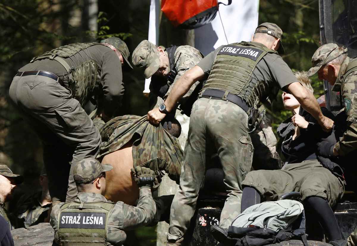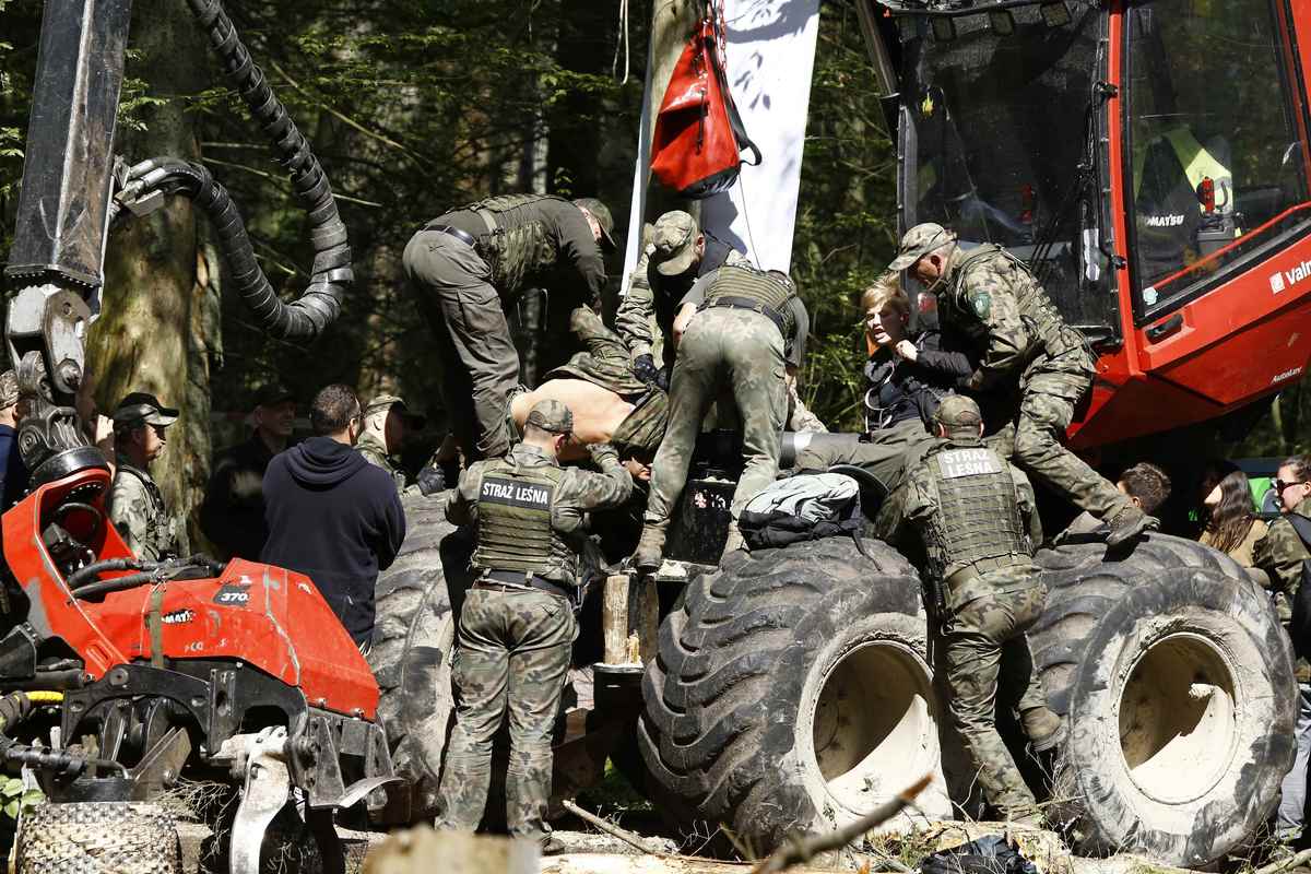 Forest guards remove environmental activists from several countries during their action in the defence of one of the last primeval forests in Europe, Bialowieza forest, Poland August 29, 2017. REUTERS/Kacper PempelAn environmental activist chains himself to a logging machine during an action in the defence of one of the last primeval forests in Europe, Bialowieza forest, Poland August 29, 2017. REUTERS/Kacper PempelForest guards remove environmental activists from several countries during an action in the defence of one of the last primeval forests in Europe, Bialowieza forest, Poland August 29, 2017. REUTERS/Kacper PempelForest guards remove environmental activists from several countries during an action in the defence of one of the last primeval forests in Europe, Bialowieza forest, Poland August 29, 2017. REUTERS/Kacper Pempel