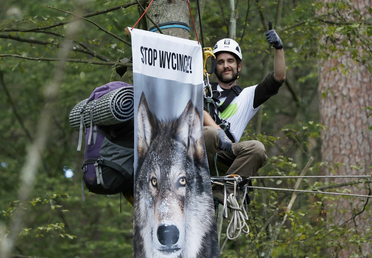 WARSAW (Reuters) - Activists climbed trees and blocked felling machines in Poland's primeval Bialowieza Forest on Tuesday in a bid to stop what they say is an illegal logging operation authorized by the government.