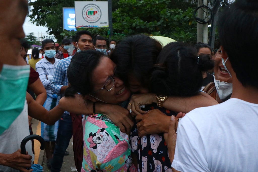 Buses took prisoners out of Yangon’s Insein Prison, where friends and families of detainees had waited since morning for the announced releases. It is standard practice to take freed prisoners to the police stations where they were originally booked to complete the processing for their freedom.