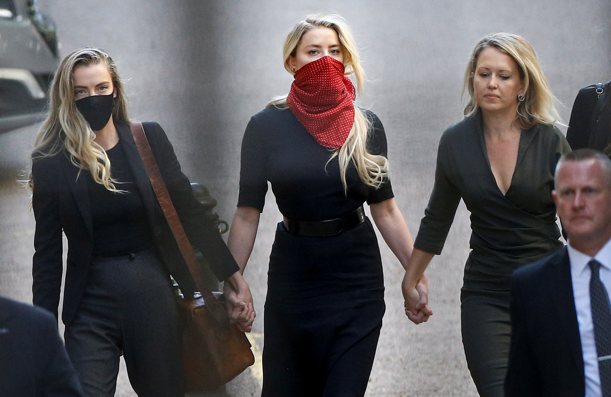 Wearing a dark suit and glasses and speaking in a deep clear tone, Depp gave evidence at the beginning of the case at London's High Court. Heard, who arrived wearing a red scarf tied around her face, is also due to give evidence.