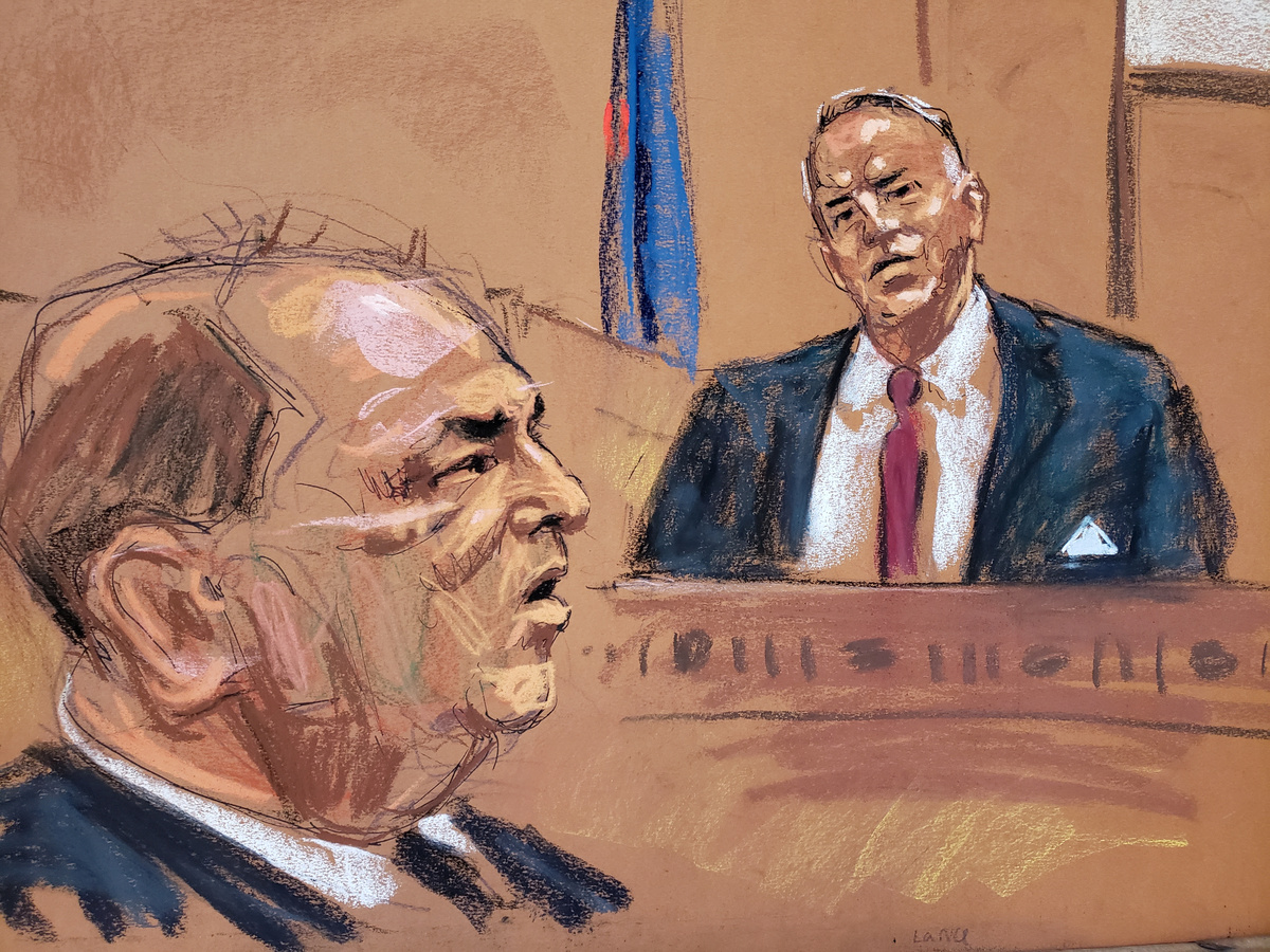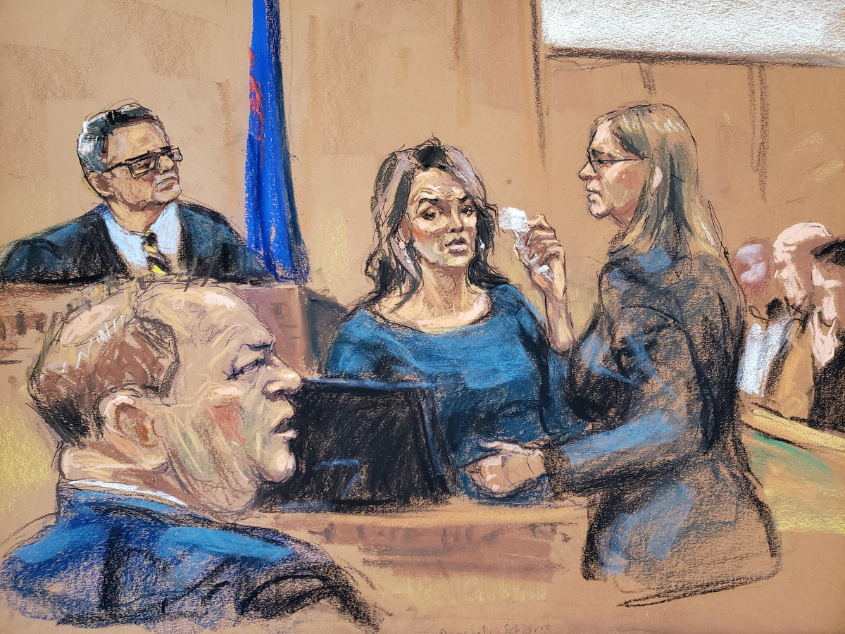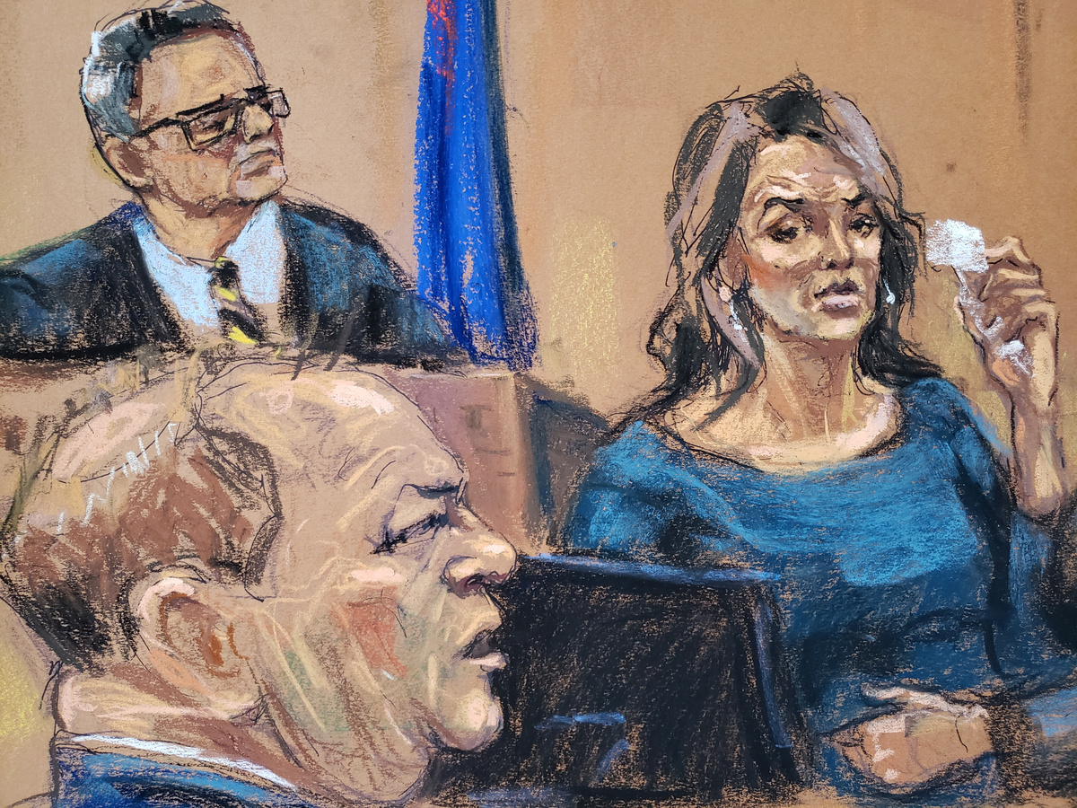 Film producer Harvey Weinstein departs his sexual assault trial at New York Criminal Court in the Manhattan borough of New York City, New York, U.S., January 23, 2020. REUTERS/Brendan McDermidFilm producer Harvey Weinstein departs his sexual assault trial at New York Criminal Court in the Manhattan borough of New York City, New York, U.S., January 22, 2020. REUTERS/Brendan McdermidFilm producer Harvey Weinstein departs his sexual assault trial at New York Criminal Court in the Manhattan borough of New York City, New York, U.S., January 23, 2020. REUTERS/Brendan McDermidActor Annabella Sciorra is questioned by prosecutor Joan Illuzzi-Orbon (not seen) on the stand in front of Judge James Burke as film producer Harvey Weinstein sits during his sexual assault trial at New York Criminal Court in the Manhattan borough of New York City, New York, U.S. January 23, 2020 in this courtroom sketch. REUTERS/Jane Rosenberg NO RESALES. NO ARCHIVESActor Annabella Sciorra is questioned by prosecutor Joan Illuzzi-Orbon on the stand as film producer Harvey Weinstein sits during his sexual assault trial at New York Criminal Court in the Manhattan borough of New York City, New York, U.S. January 23, 2020 in this courtroom sketch. REUTERS/Jane Rosenberg Lance Maerov testifies during film producer Harvey Weinstein's sexual assault trial at New York Criminal Court in the Manhattan borough of New York City, New York, U.S. January 22, 2020 in this courtroom sketch. REUTERS/Jane Rosenberg Film producer Harvey Weinstein arrives at New York Criminal Court for his sexual assault trial in the Manhattan borough of New York City, New York, U.S., January 23, 2020. REUTERS/Brendan McDermidActor Annabella Sciorra arrives to testify as a witness in the case of film producer Harvey Weinstein at New York Criminal Court during his sexual assault trial in the Manhattan borough of New York City, New York, U.S., January 23, 2020. REUTERS/Lucas JacksonFILE PHOTO: Lance Maerov is seen at New York Criminal Court as he attends film producer Harvey Weinstein's sexual assault trial in the Manhattan borough of New York City, New York, U.S., January 22, 2020. REUTERS/Lucas JacksonAttorney Gloria Allred arrives to attend the sexual assault trial of film producer Harvey Weinstein at New York Criminal Court in the Manhattan borough of New York City, New York, U.S., January 23, 2020. REUTERS/Lucas JacksonFilm producer Harvey Weinstein arrives at New York Criminal Court for his sexual assault trial in the Manhattan borough of New York City, New York, U.S., January 23, 2020. REUTERS/Lucas Jackson