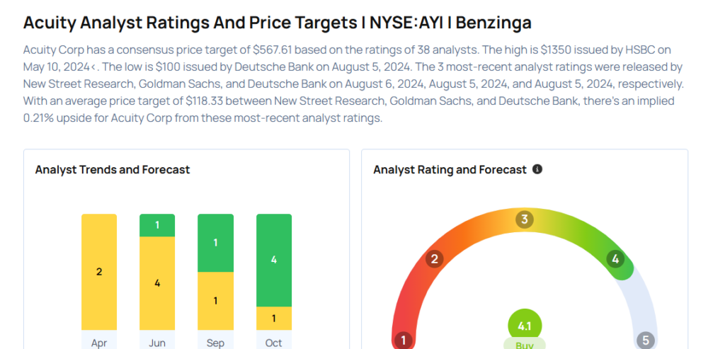 - Oppenheimer analyst Christopher Glynn maintained Acuity with an Outperform rating and raised the price target from $380 to $435.