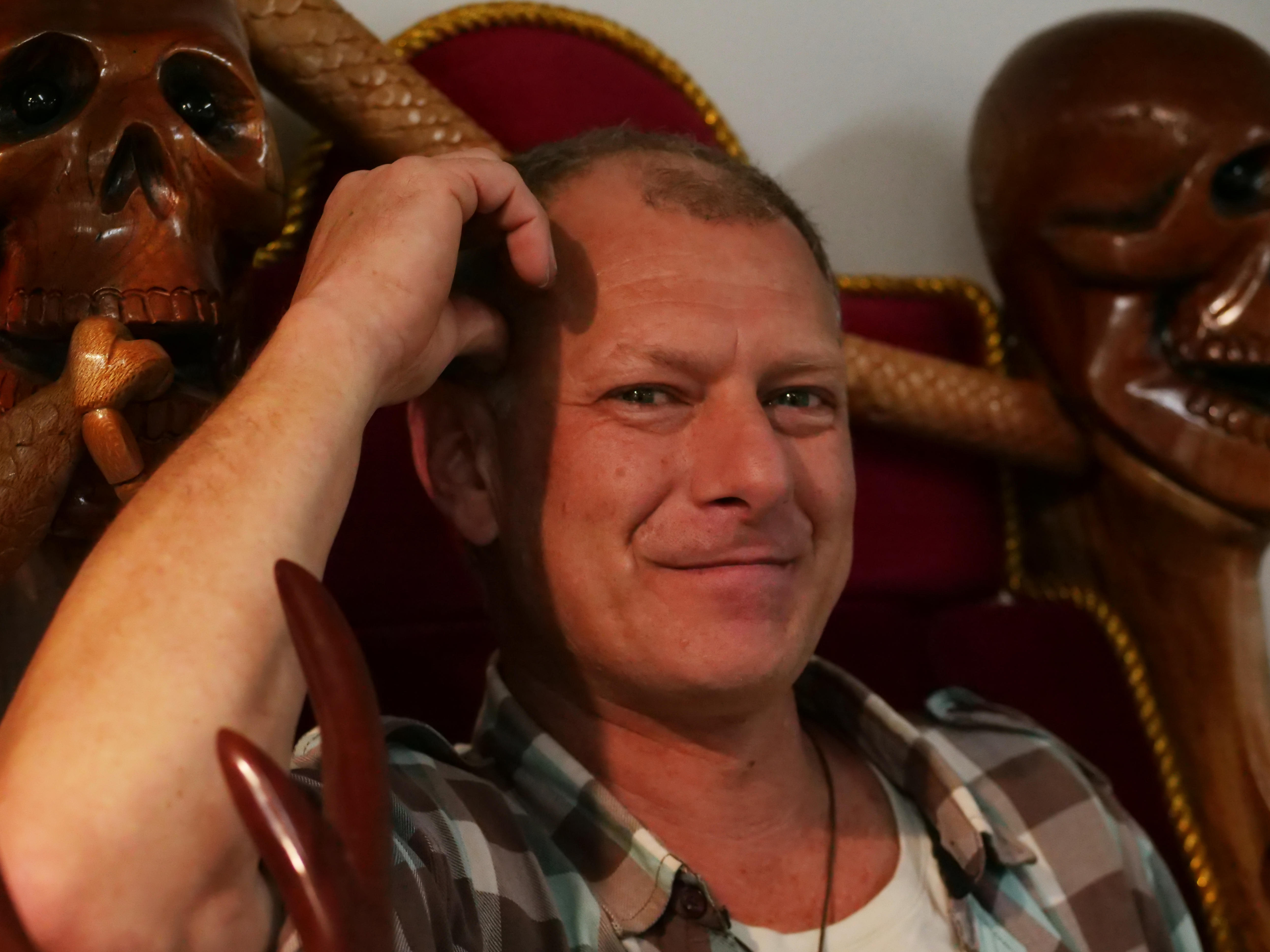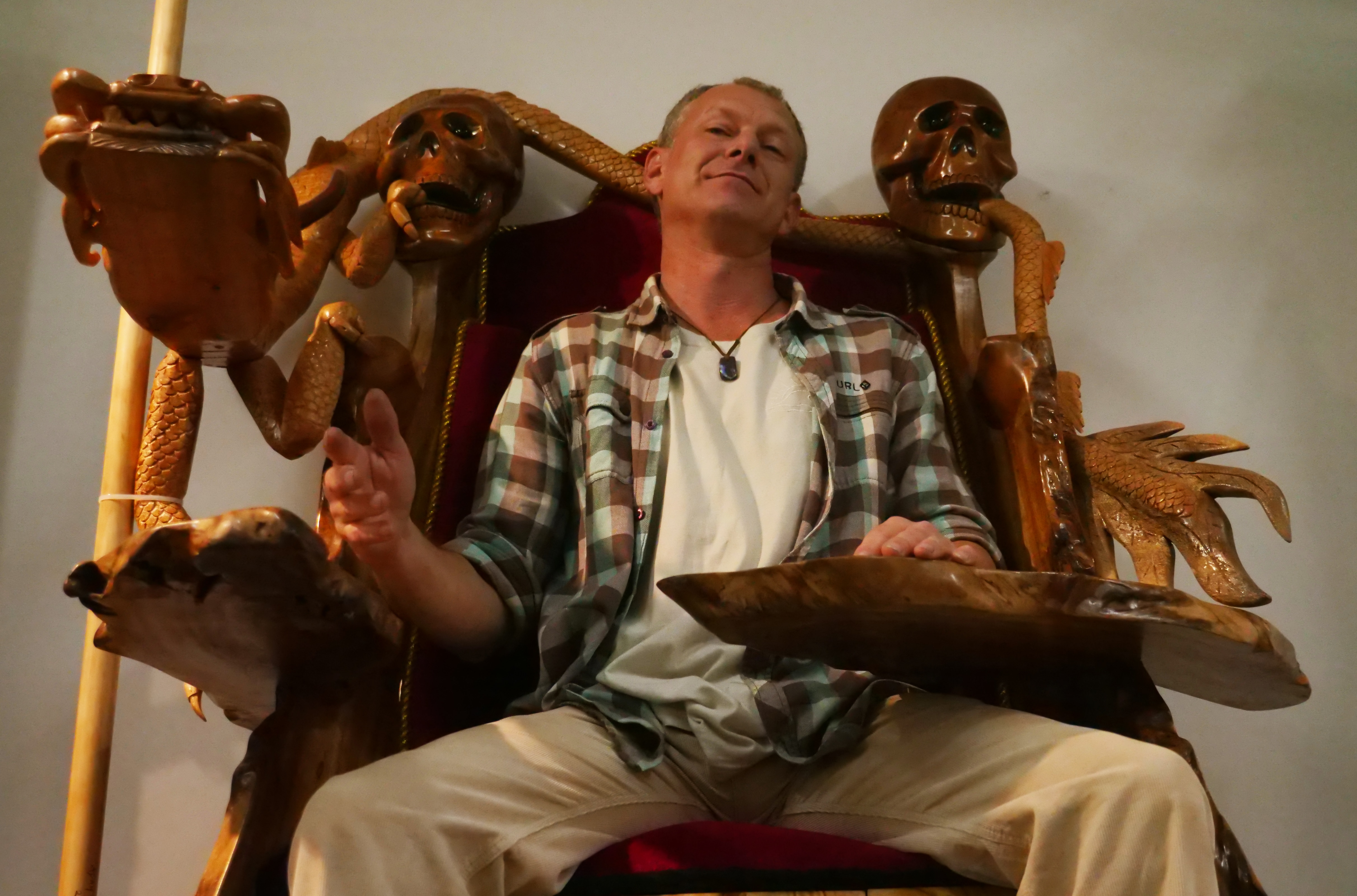 Adam Pippos and his handcrafted wooden throne — now on display as part of an art exhibition at Kirra Community Centre — may be a case in point.