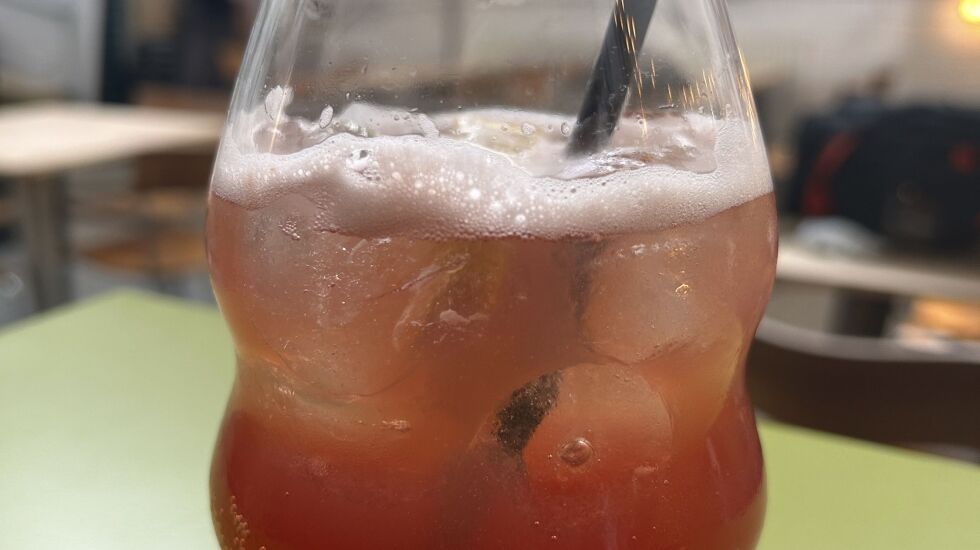 - Add ice and all ingredients except the sparkling water to a shaker, shake for 30 seconds, and strain into a glass filled with ice.