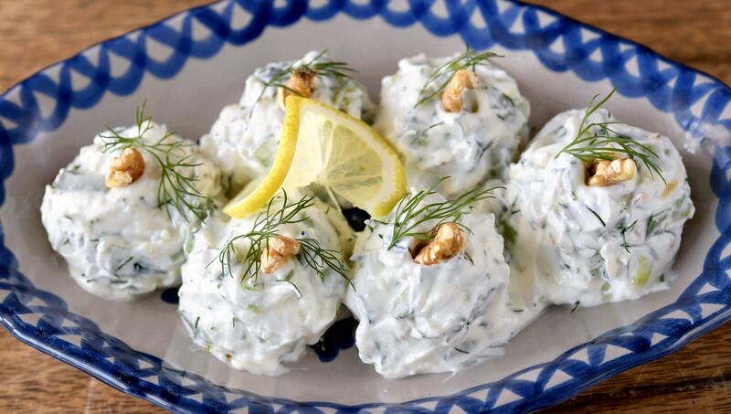 Bulgarian salad called snezhanka can be made using the same ingredients as the chilled yogurt soup. Place the yogurt in a paper coffee filter for more than four hours to reduce the amount to about one-half. Add chopped cucumber and walnuts, grated garlic and olive oil before seasoning the mixture with salt. Garnish with dill and lemon. It tastes excellent on bread.
