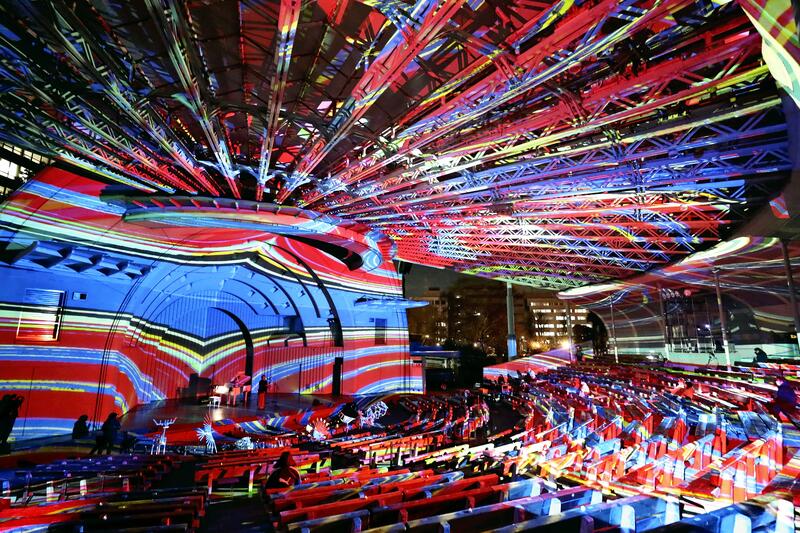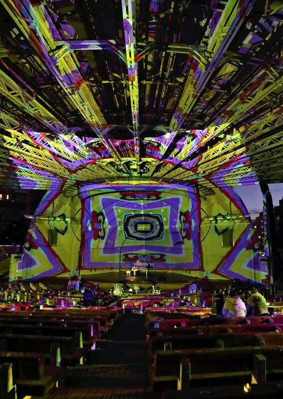 The 90-minute "Peace of Light" show featured colorful images evoking abstract paintings projected in the hall beside Shinobazu Pond.