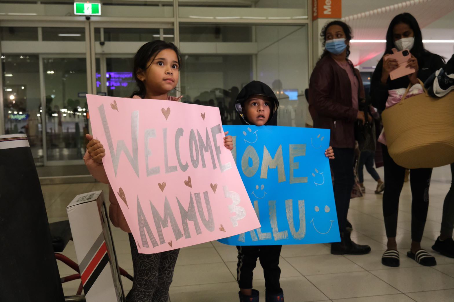There were loud cheers as the two children came through the gates at Adelaide Airport on Wednesday night.