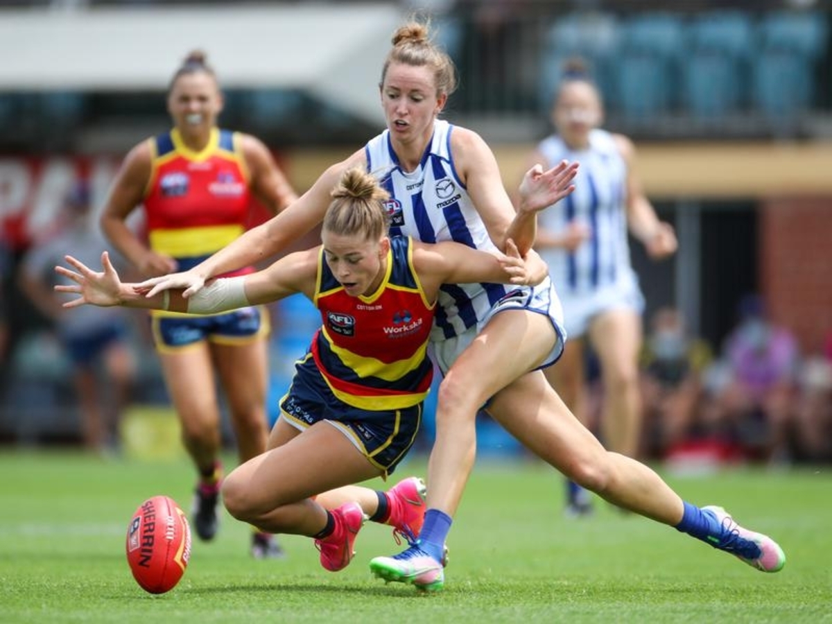 Adelaide, with their dual AFLW best and fairest winner Phillips collecting 14 touches - one shy of North's Riddell - held a 3.3 to 1.3 halftime lead.