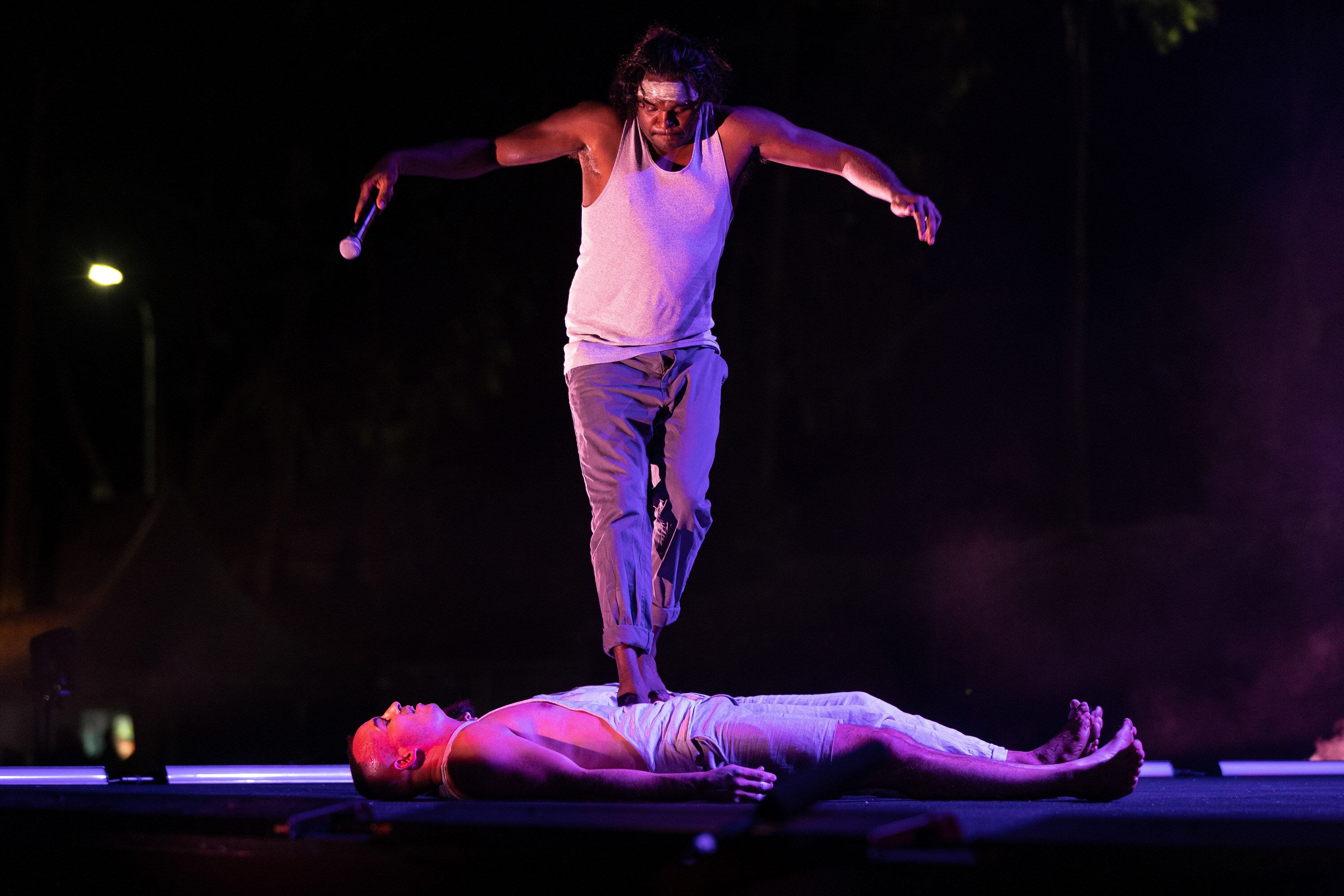 For 2022, the festival brokered a match between a collective of Australian artists — including Adelaide circus ensemble Gravity and Other Myths, Indigenous Australian dance group Djuki Mala and Kaurna company Yellaka — with Scottish artists, to create the opening night event MACRO.
