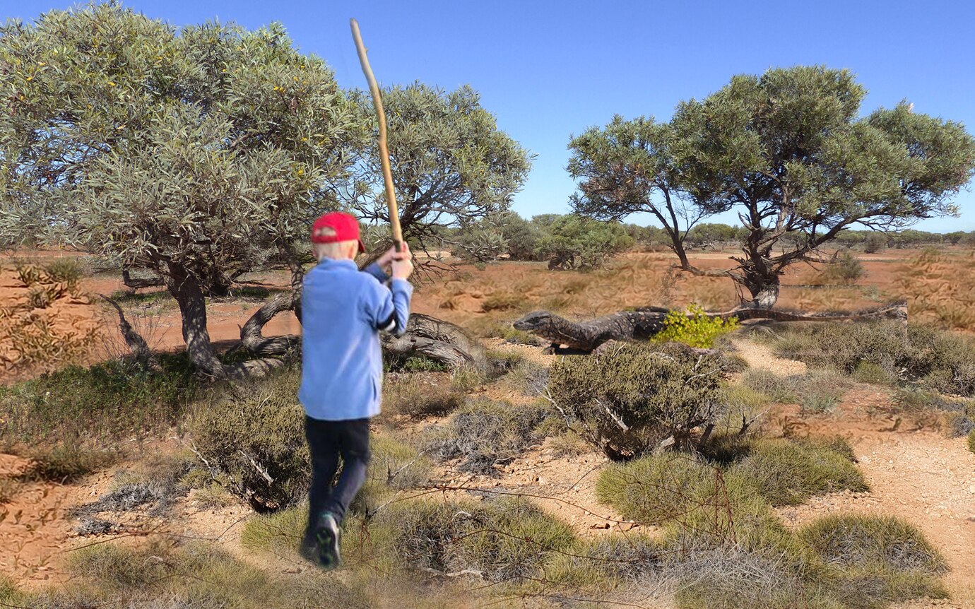 "In the pelican story, we needed a boy pretending he was chasing a goanna and so I asked my daughter-in-law to take a photo of her son holding a stick and running away from the camera.