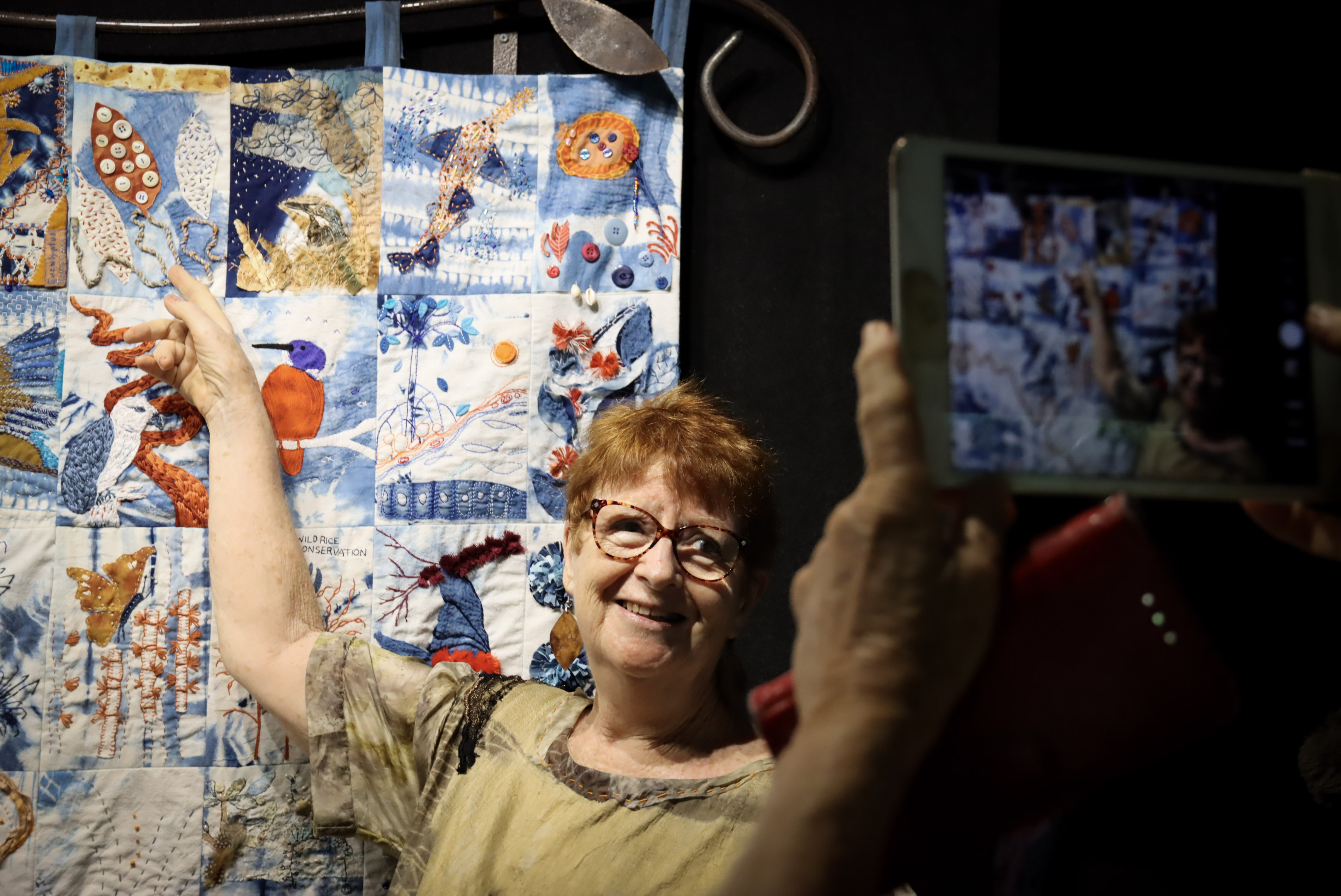The quilt was also given a special metal vine hanger with a kingfisher sculpture, constructed and designed by local artists Peter Jettner and Troya Bywaters.