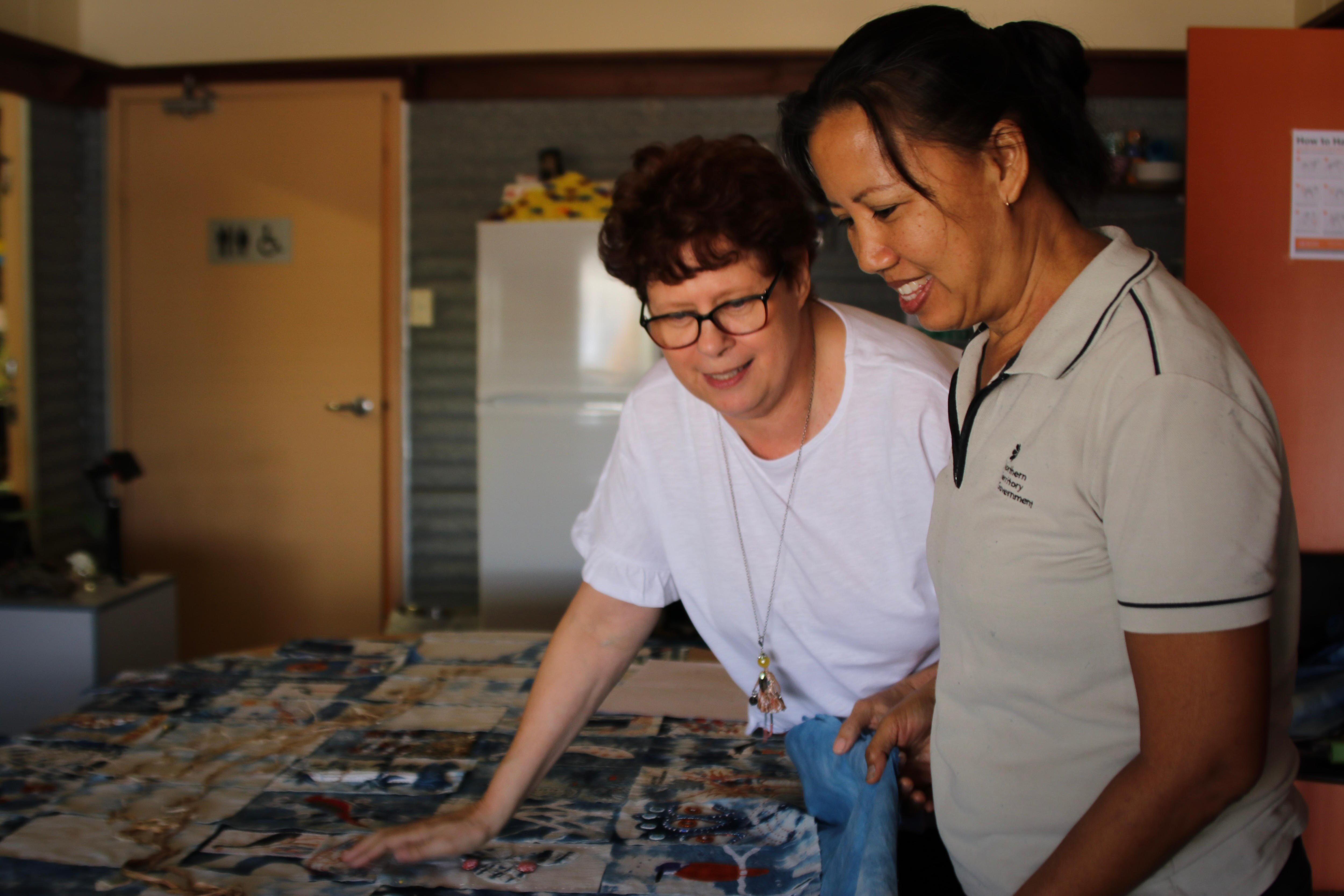 The pair work together in Darwin's rural region and are among more than 80 women who have spent months slow-stitching a community quilt with a message.