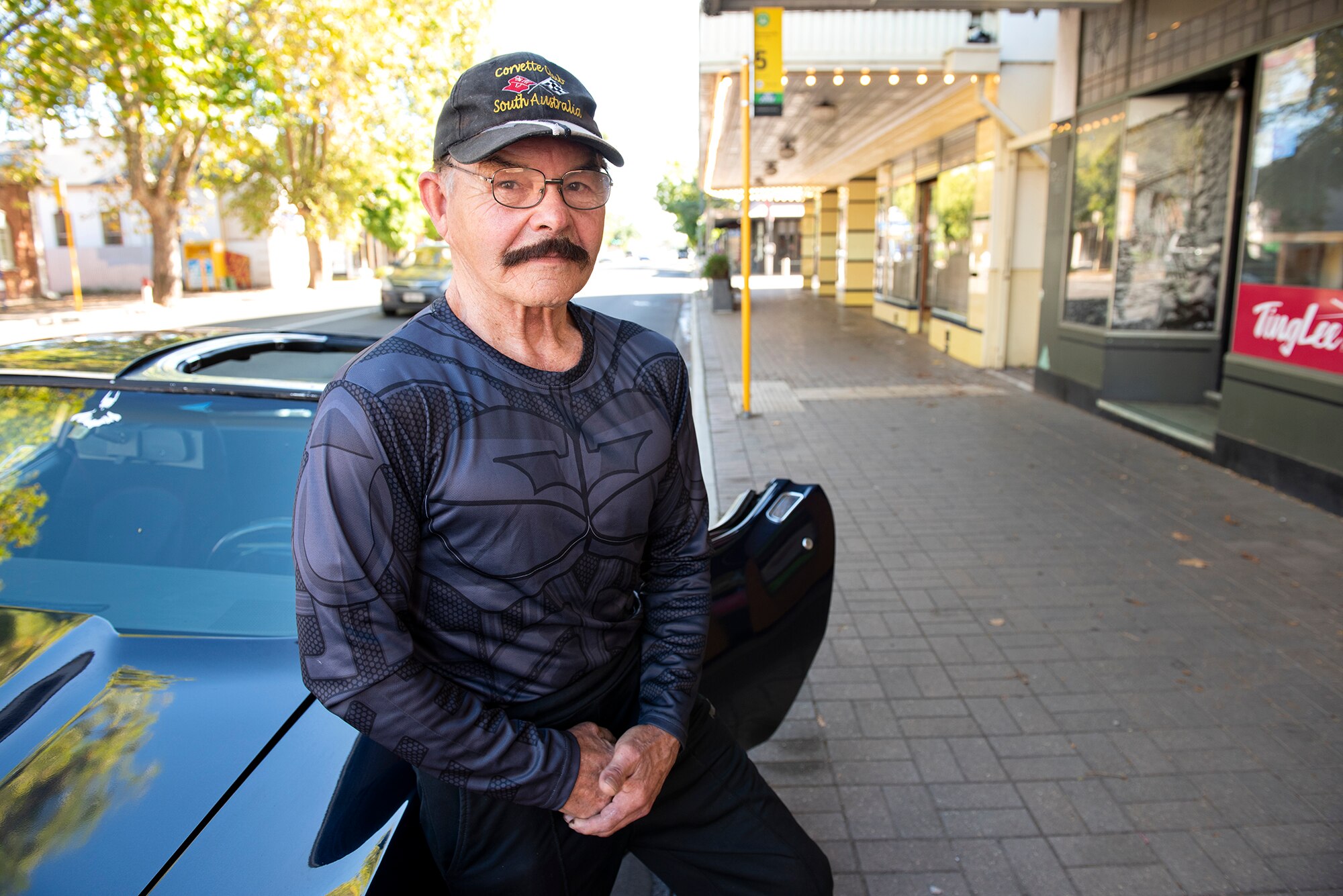 But rather than fighting crime, 74-year-old Phil Peake has been jumping into his version of the Batmobile – a 1977 dark blue Chevrolet Corvette – and driving the city's busiest pedestrian strips for no reason other than to have fun.