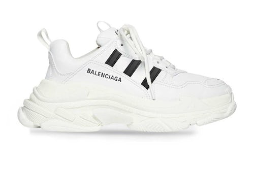 Leak page @apolloluo1976 first hinted at the collaboration, and now official-looking images have surfaced showing off a pair of Balenciaga’s infamous Triple S sneakers with recognizable Adidas branding. Three Stripes decorate the sides of the chunky model, as a Balenciaga logo sits beneath Adidas’ trefoil motif at the heel. The clean, black-and-white design has yet to be officially confirmed by either brand, although a Balenciaga partnership would fit well in Adidas’ wheelhouse given its activities this year alone.