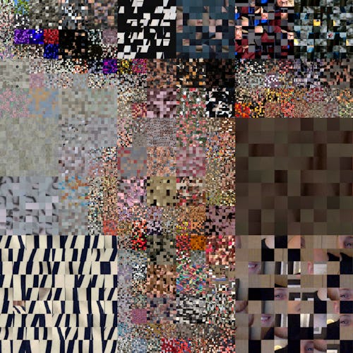 Digital artist Zach Lieberman designed the composite NFT, and by the looks of it he could have saved himself some time by plugging some 3,000 images into an online template. The distorted compilation forms a lookbook shot of a model in Prada and Adidas’ track jacket and bucket hat, and it looks like something Jostens would throw together to hang up in your school.