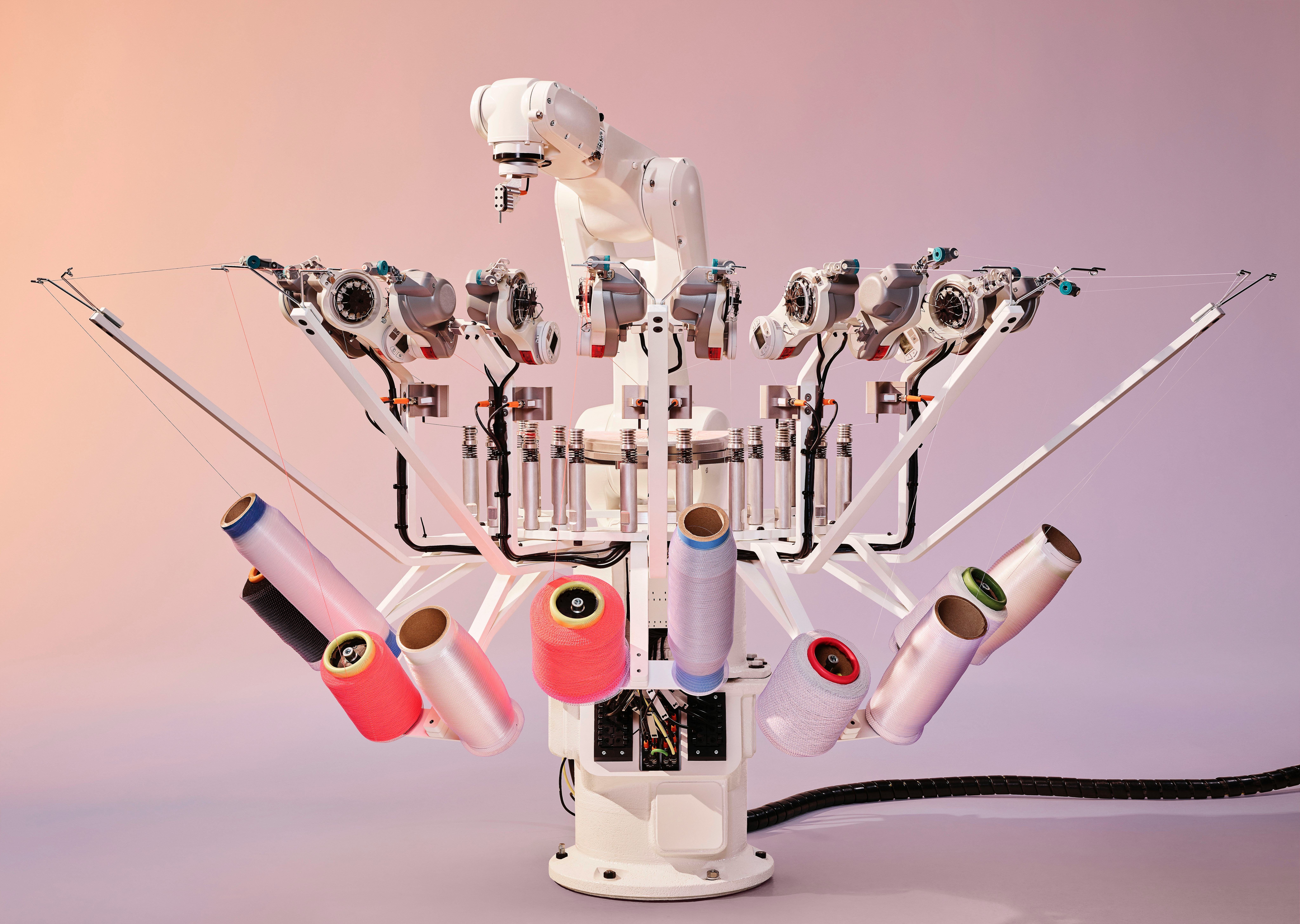"The original inspiration came from architecture and some interesting experiments where we saw robotics used in a creative way to build fibre structures," said the team behind Adidas' Strung technology. "We wanted to see how we as a team could interact with robotics and athlete data in a meaningful, creative way. The process of creating and refining new Strung software, hardware and prototypes led to increased buy-in and more and more people joining as development became more complex."