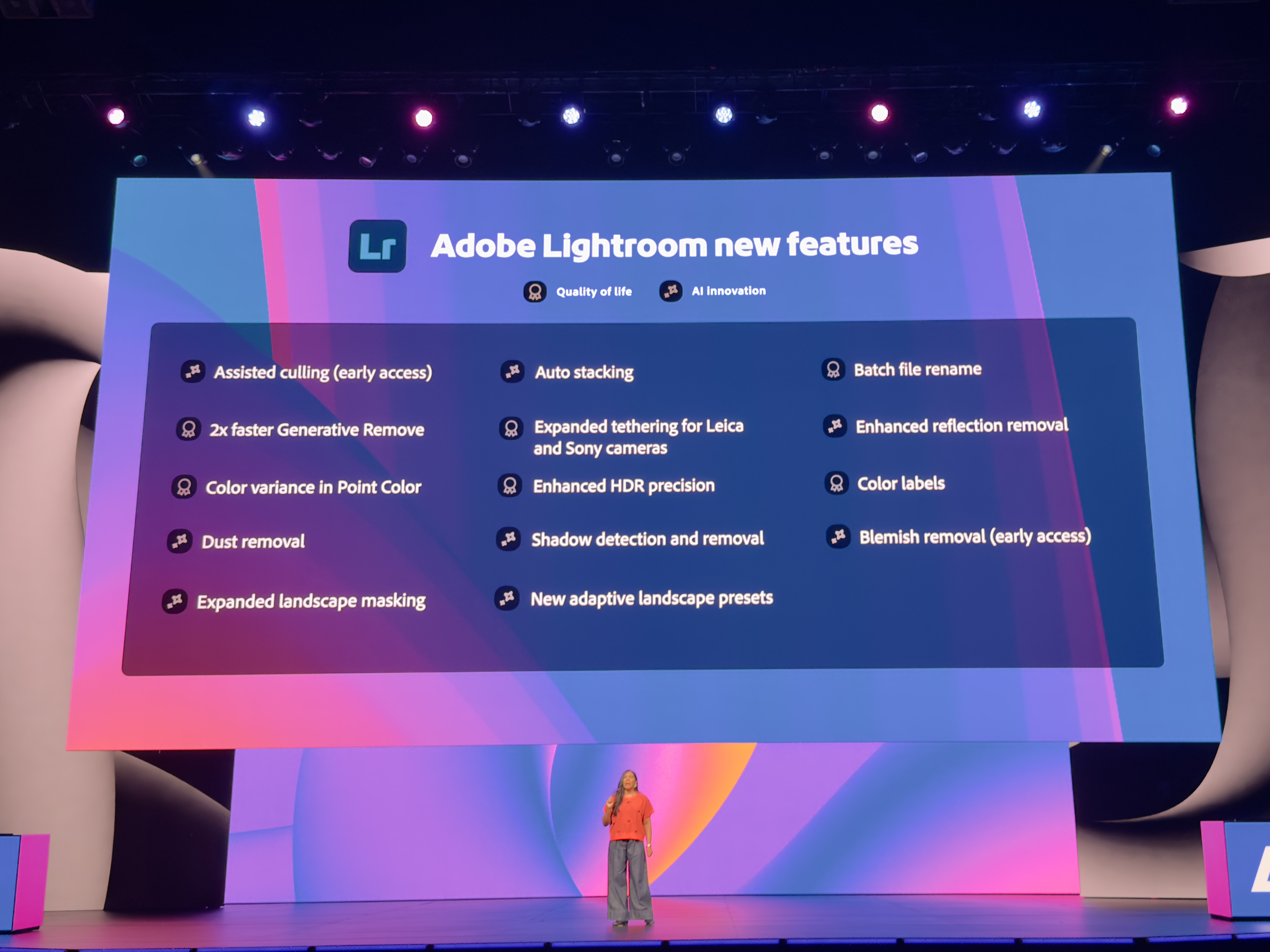 In another demo, we're seeing how Lightroom can detect and remove people from photos with staggering accuracy. Reflections, dust spots, you name it, GenAI can probably handle it.