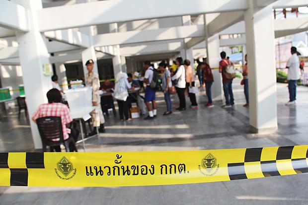 Silapasuay Rawisaengsoon, the City Clerk, arrived at Mathayom Bang Kapi School and Ban Bang Kapi School, where advance voting in Bang Kapi district is held, at 7am for an inspection of facilities.