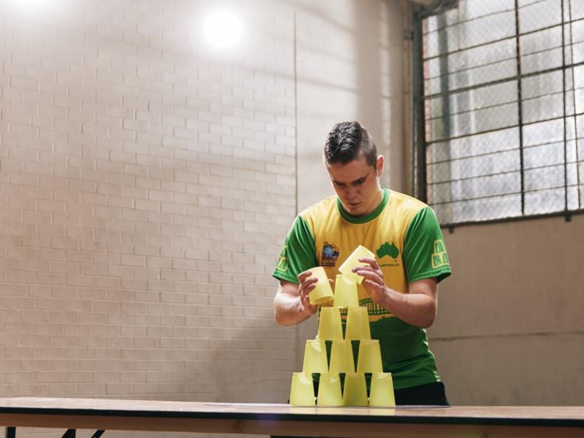 The niche sport, which has its own international body, involves competitors stacking and unstacking cups into pyramids across three events: the 3-3-3, 3-6-3 and cycle.