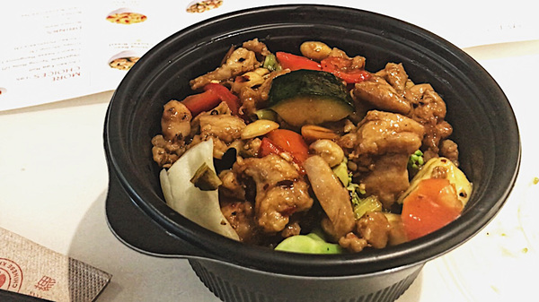 At Panda Express, Welstead chose the kung pao chicken bowl with steamed vegetables, garnished with peanuts and chile peppers, to bring the total calorie count to just under 400. She chose the kung pao chicken because it's a savory and spicy option that is packed with protein.