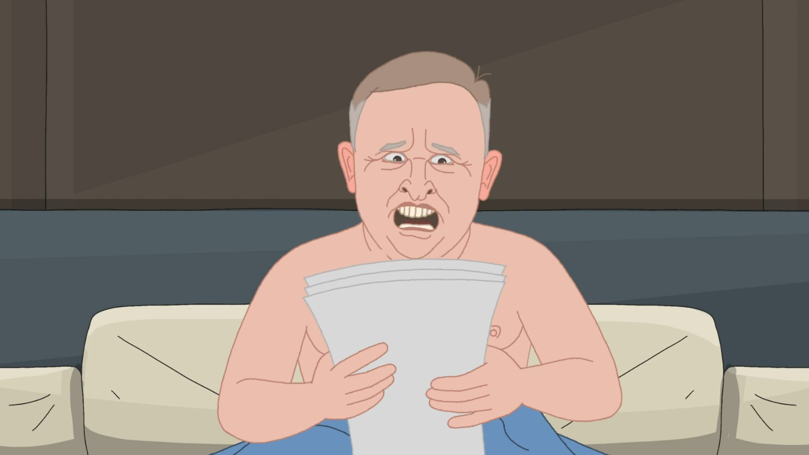 The two-minute animation depicts Labor senate leader Penny Wong bringing a bed-ridden and shirtless Anthony Albanese a bowl of soup before divulging party plans to conduct voter fraud.