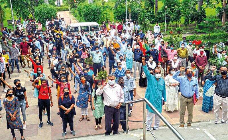 This has raised doubts about the future among the teachers and students of grant-in-aid colleges of SES. The teachers and students of SES-run colleges on Friday held protests at VNSGU and made representation to the officials. The colleges in question include MTB Arts College, Sir P T Sarvajanik College of Science, Sir K P College of Commerce. However, VNSGU vice-chancellor K N Chavda clarified that the matter was between SES and the education department and the university had no role to play in it.