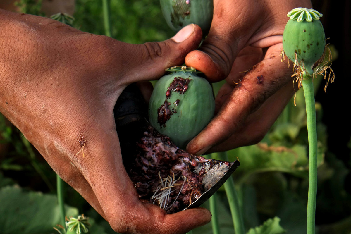 Nadir scraped the gum from poppy bulbs into plastic containers to be used in making opium, heroin and other drugs.