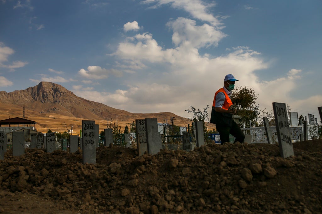 Plain concrete gravestones painted with a number and the word “Afghan” are all that mark the final resting places of dozens of unidentified migrants who died trying to enter Turkey through the rugged mountainous border with Iran