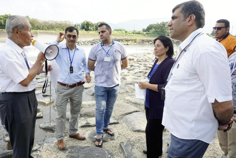 ASAKURA, Fukuoka -- A group of Afghan government officials visited the Yamadazeki weir in Asakura, Fukuoka Prefecture, earlier this month as part of a project to build an intake dam modeled on the weir. They studied the history and structure of the weir, which has been in use since the Edo period (1603-1867).
