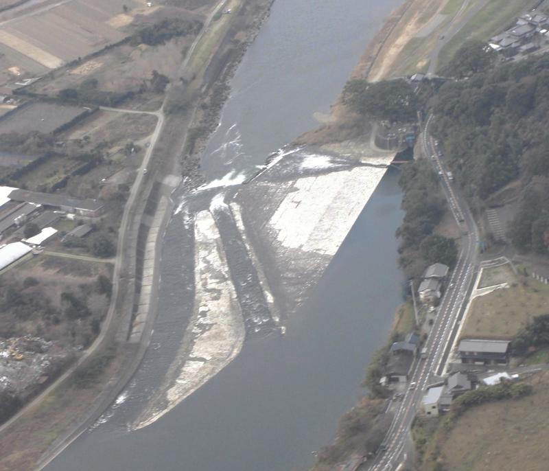 According to a local group working to improve and maintain the weir, the system dates to the Edo period and still delivers water from the Chikugogawa river to farmland in the area through the Horikawa Yosui canal and a triple waterwheel -- both nationally designated historic sites.