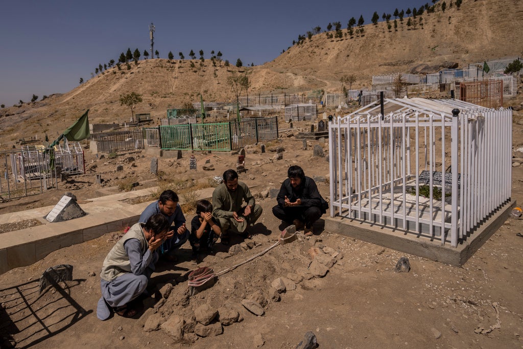 The drone strike followed a devastating suicide bombing by the Islamic State group — a rival of the Taliban — that killed 169 Afghans and 13 U.S. military personnel at one of the gates to the Kabul airport. For days, desperate Afghans had swarmed the checkpoints outside the airport, trying to leave the country amid the chaotic U.S. and NATO troops pullout, fearing for their future under the Taliban.