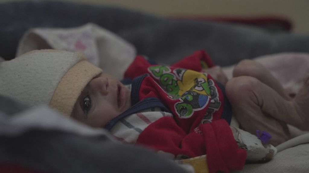 In Kabul's main children's hospital, two-year-old Guldana is sitting up in her bed, but she's too exhausted to even open her eyes. Her tiny body is wrapped in a blanket, only her emaciated face showing.