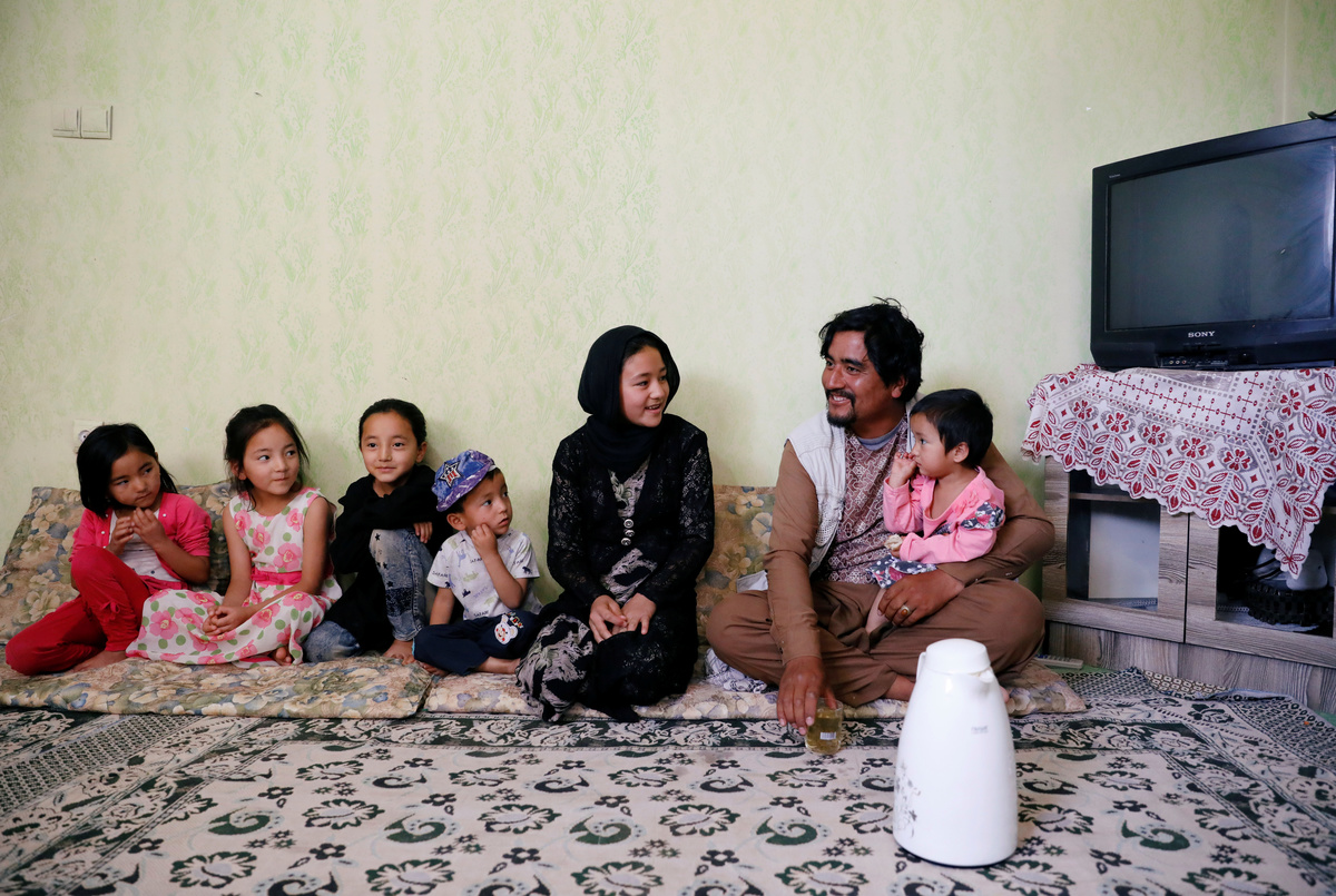After work, Zaheri drinks tea and eats bread at home with his seven children. His eldest daughter Laila, 10, said she appreciated her father taking risks in going to out work on a mountain in the middle of a pandemic.