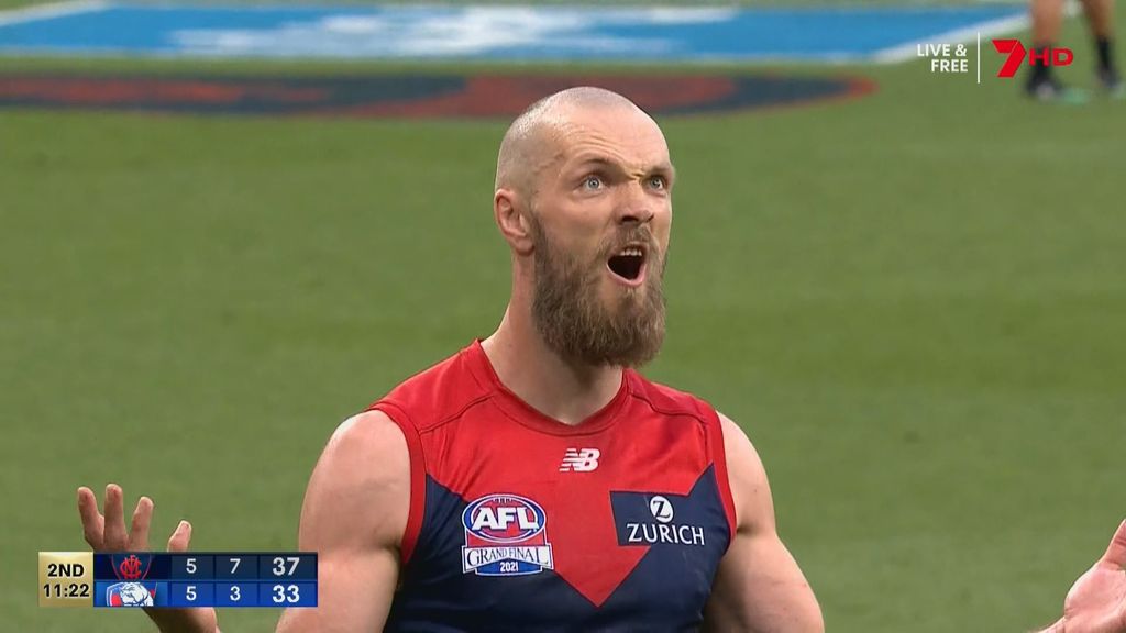 As the Demons looked to stem the bleeding of a Bulldogs comeback, Max Gawn took an uncontested mark in the forward pocket about 30m out on a tough angle.