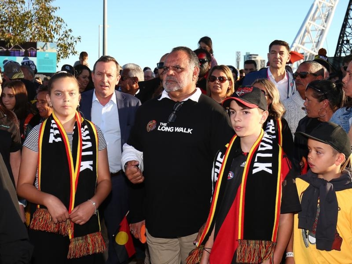 Last weekend, Long led about 6000 people in another Long Walk, this time at Perth's Optus Stadium ahead of the annual Dreamtime match between Essendon and Richmond.