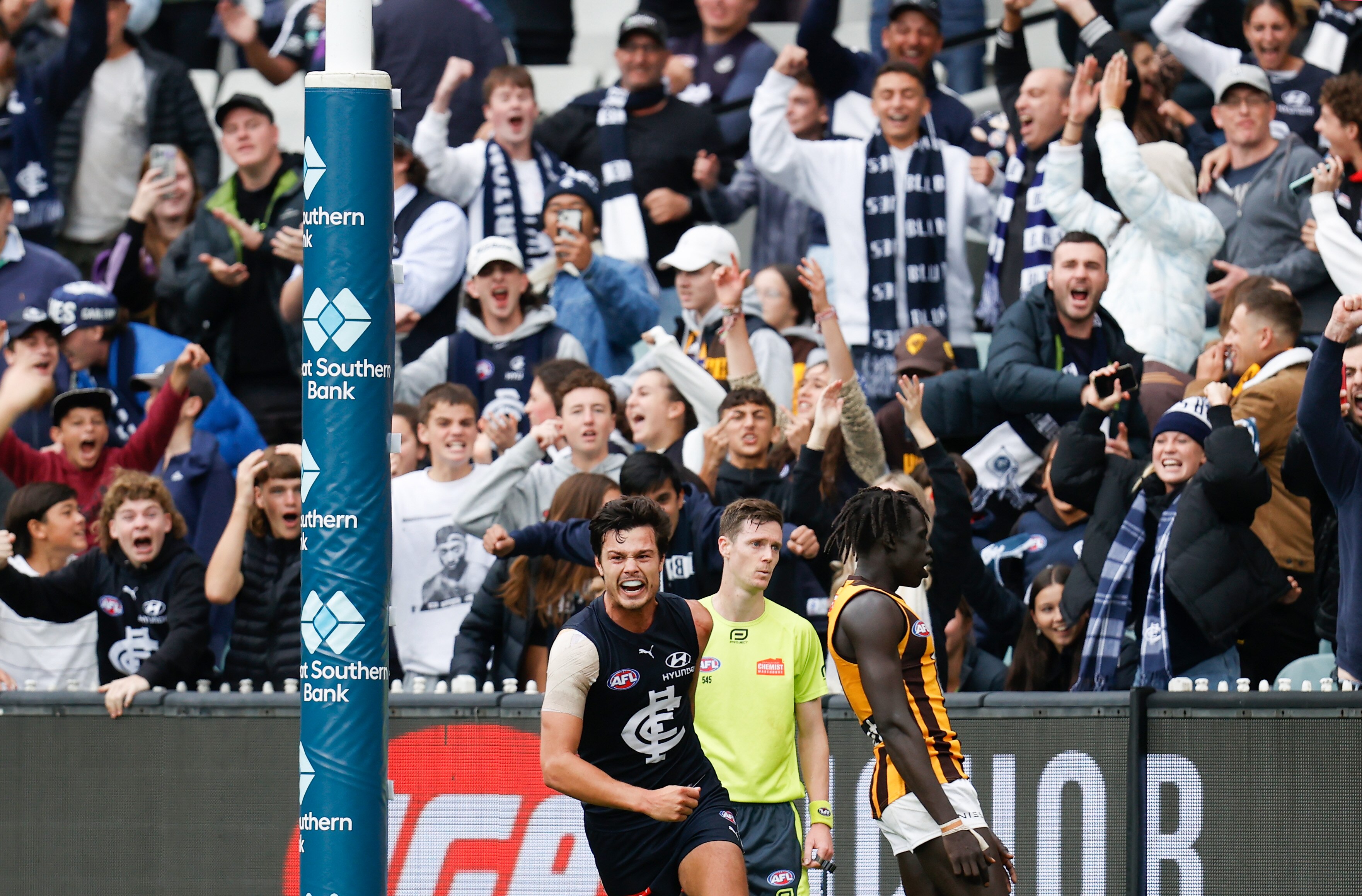 Charlie Curnow and Silvagni kicked three goals each for the Blues, while Gunston, Breust and Dylan Moore booted two apiece for Hawthorn.