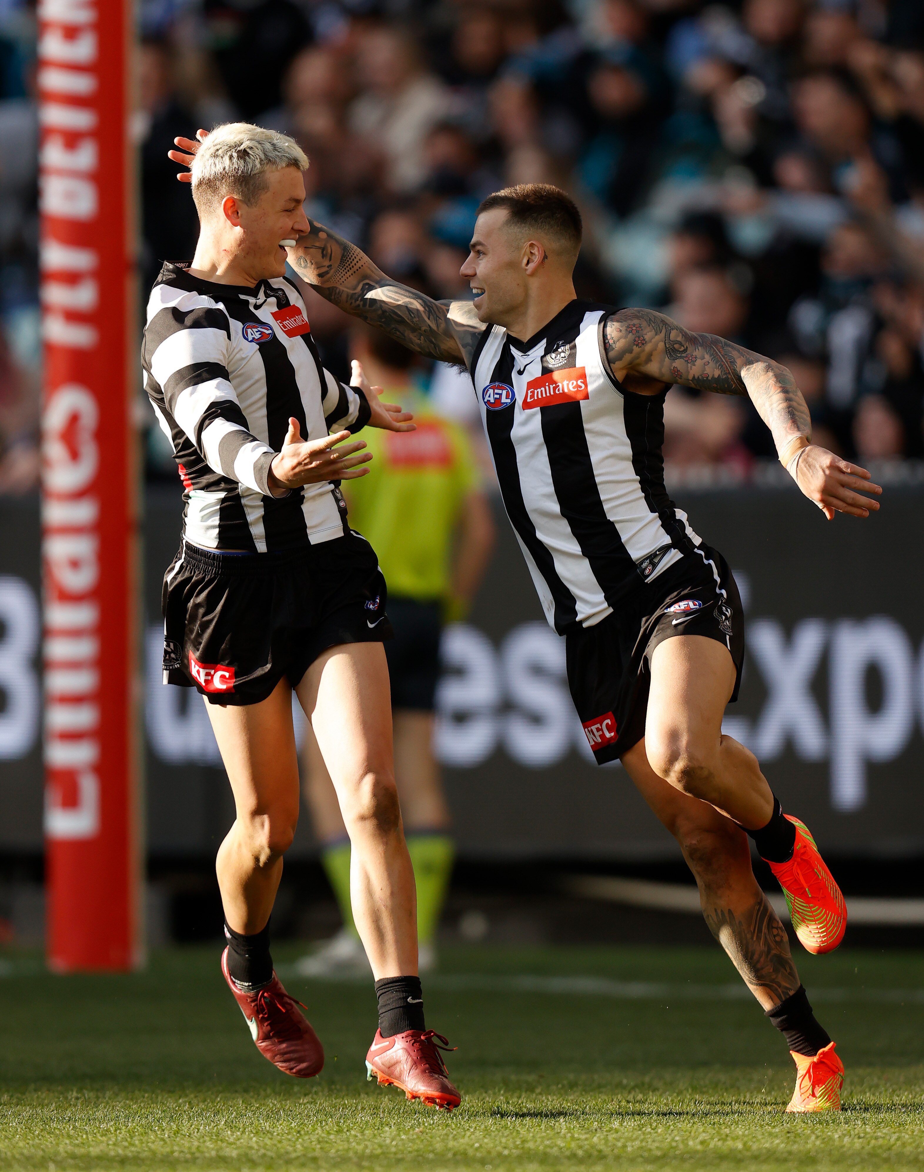 This was another victory full of fight and character, with Collingwood forced to activate medical sub Josh Carmichael at half-time to replace onballer Taylor Adams, ruled out by a groin injury.