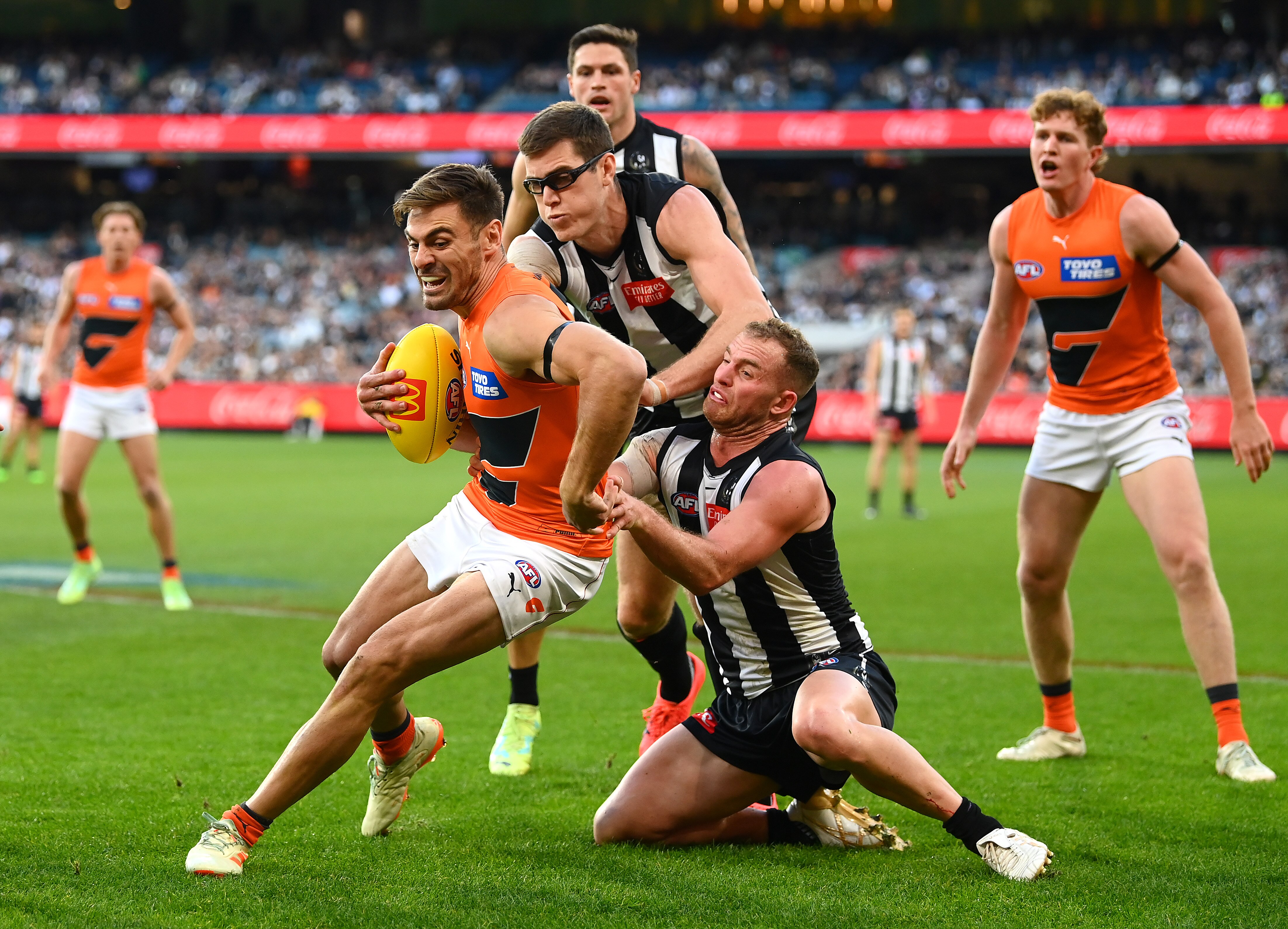 Emerging star Tom Green (30 disposals, eight clearances), former captain Stephen Coniglio and Lachie Ash (both 32 touches) battled hard in the middle for GWS.