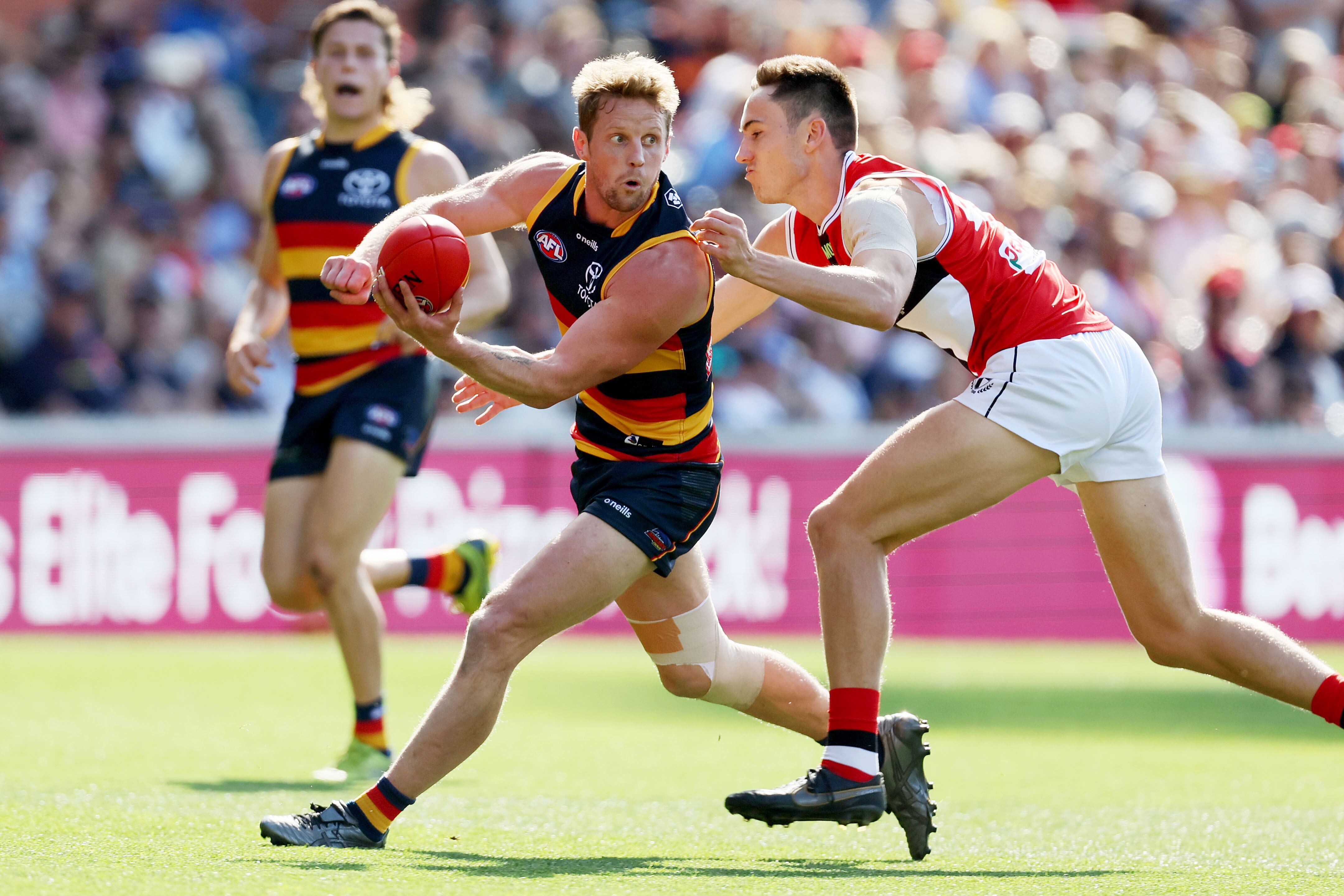 Former Crow Brad Crouch topped St Kilda's ball-winners with 30 disposals and Hunter Clark (24) and Jack Steele (23) also battled against the flow.