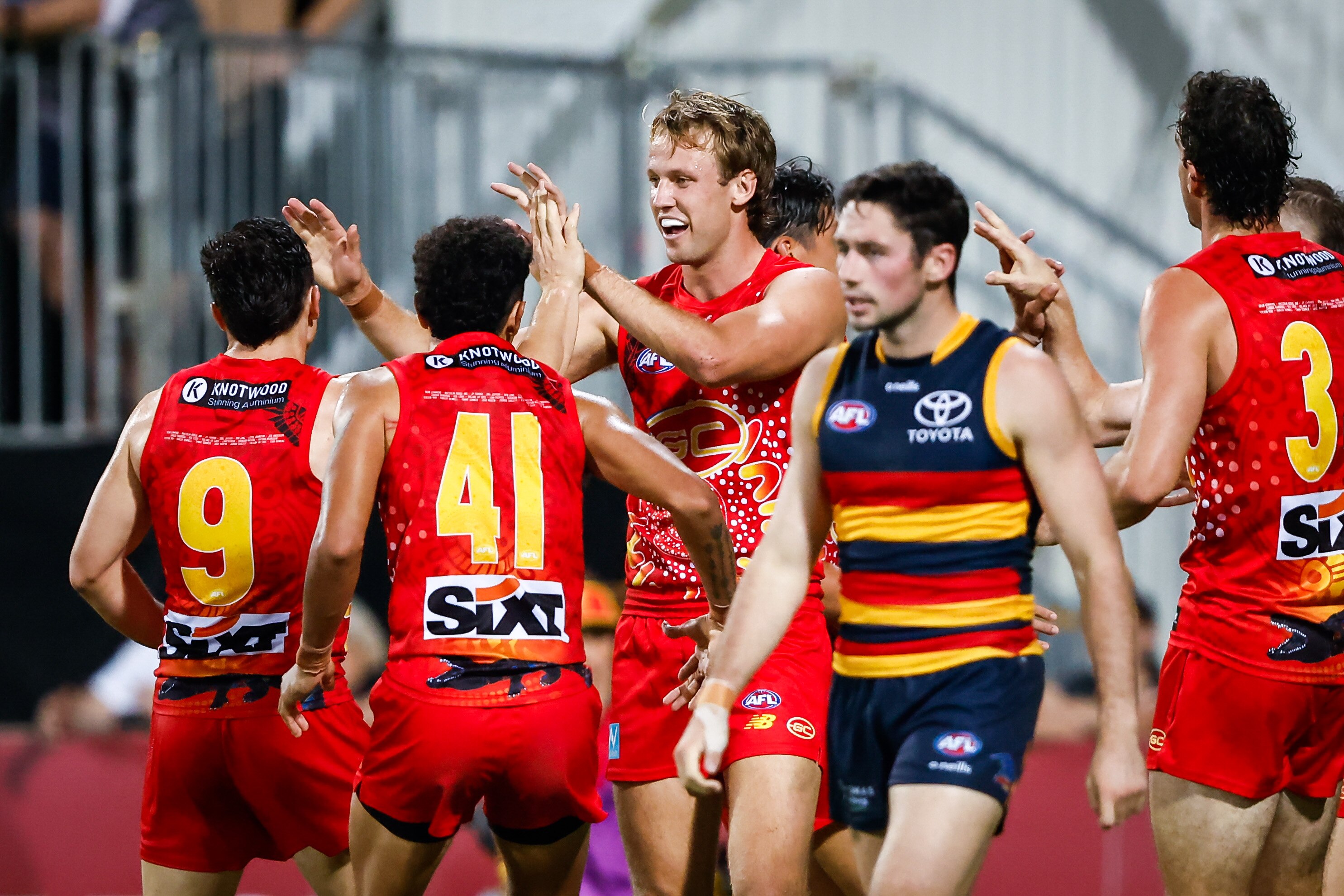The second half saw a different contest, as Adelaide players failed to take their chances, while the Suns booted 11 goals to five to get over the top of their fancied opponents.