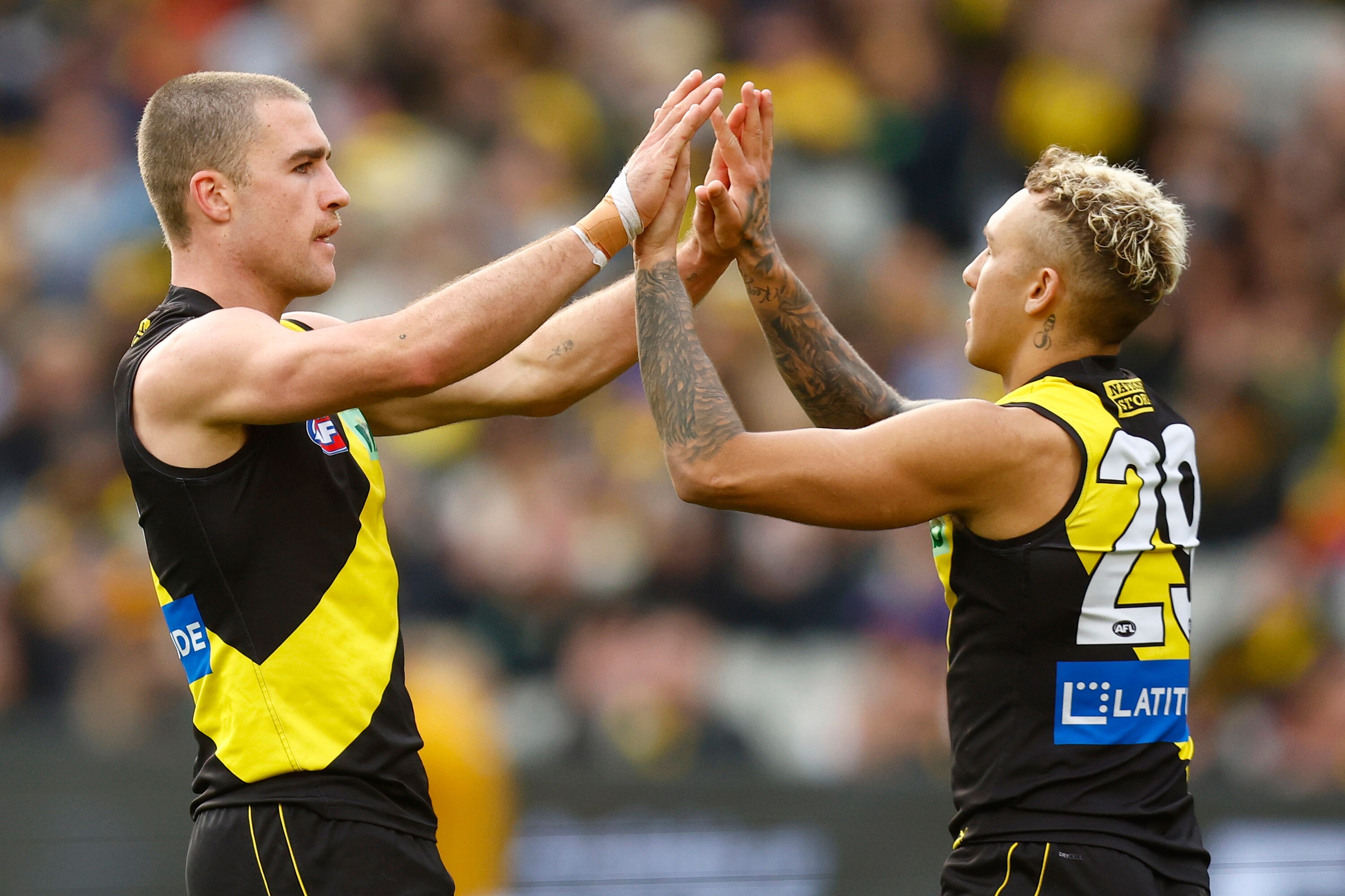 Jack Riewoldt (three), Shai Bolton, Shane Edwards, Tom Lynch, Kamdyn McIntosh, Liam Baker and Pickett (two each) all kicked multiple goals.