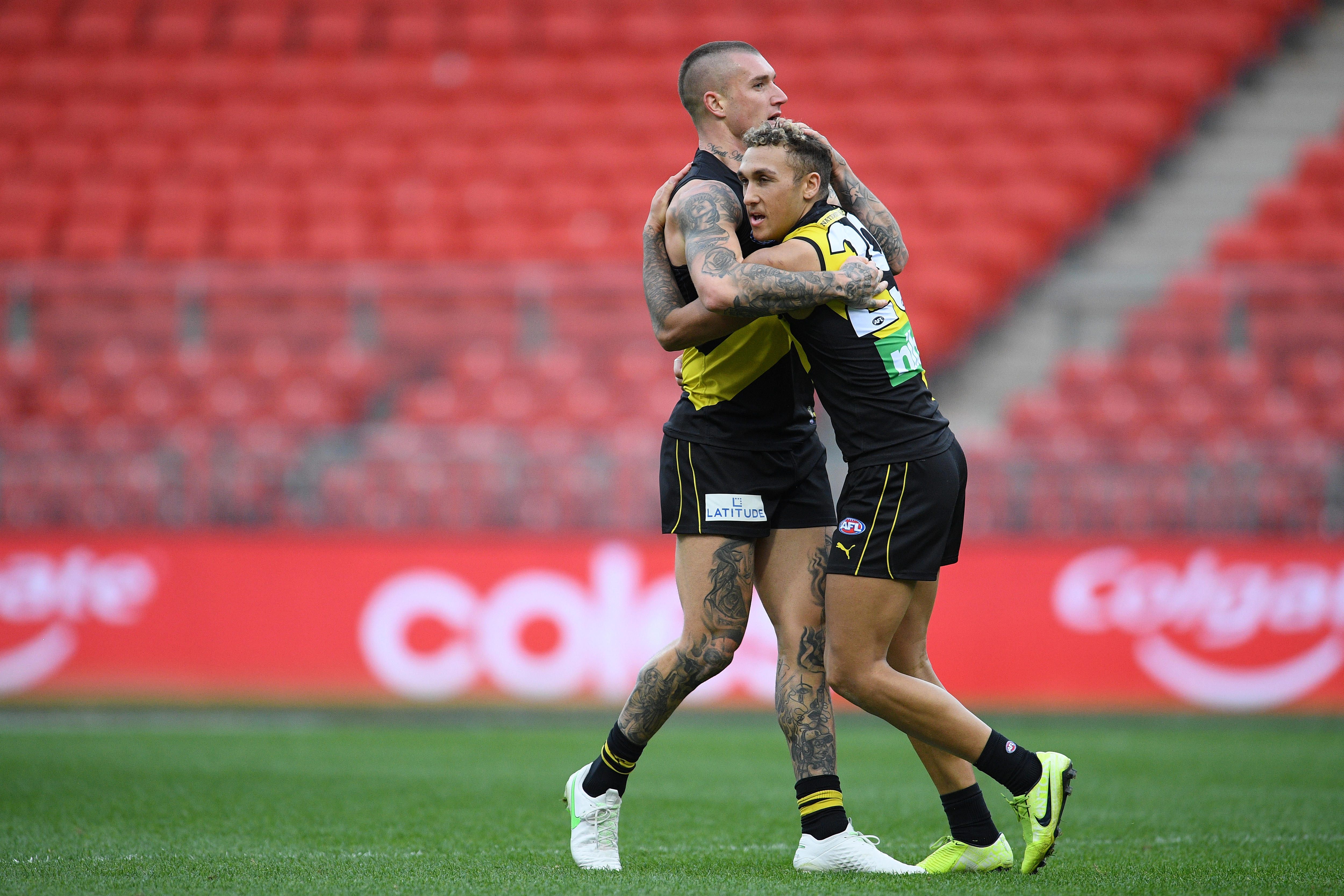 The Tigers also welcomed fellow premiership stars Trent Cotchin (20 disposals, 10 tackles, six clearances) and Dion Prestia back into the midfield fold.